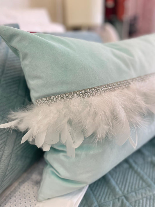 Almofada Decorativa em Veludo com Penas e Brilhos