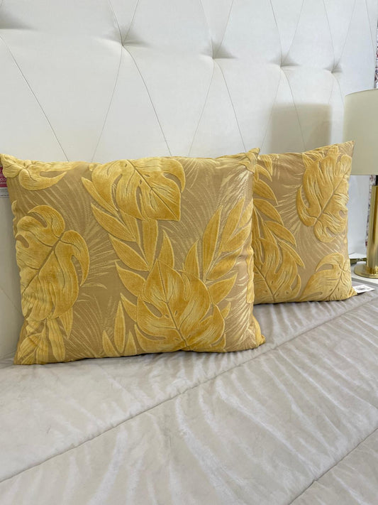 Almofada em Veludo com Penas e Brilhos Amarelo