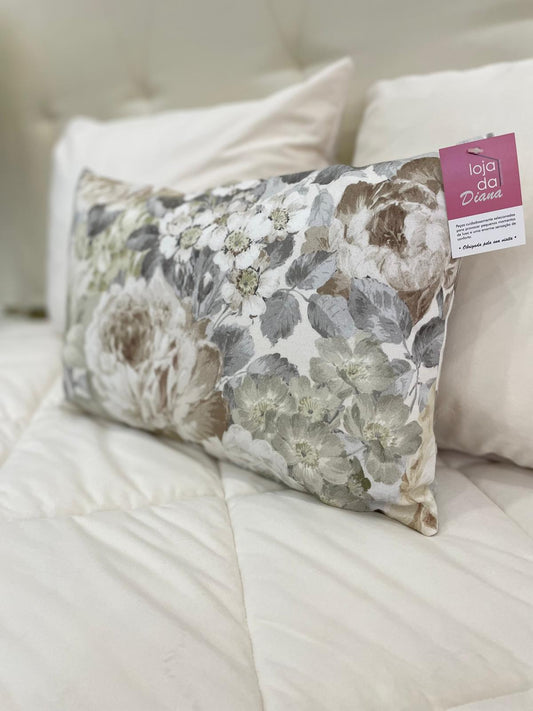 Almofada decorativa tecido floral tons Beje e Cinza