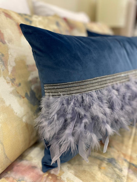 Almofada com Penas e Brilhos Azul