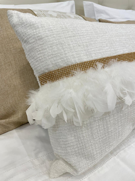 Almofada em Tecido com Penas e Brilhos