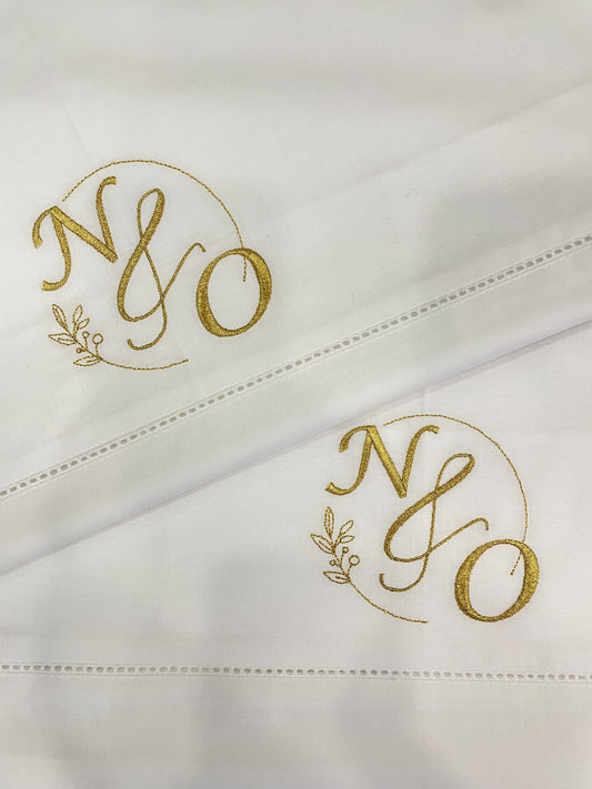 Jogo de Cama Personalizado com Bordado com Duas Iniciais (EXCLUSIVO)