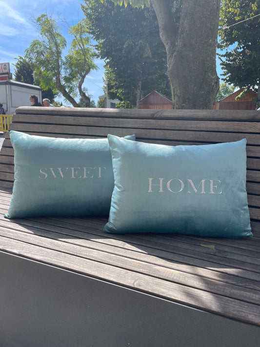 Conjunto de duas Almofadas em Veludo Bordadas SWEET HOME (EXCLUSIVAS)