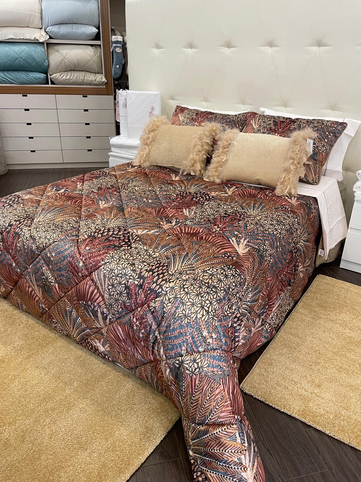A parte superior do edredon em veludo macio oferece um toque sofisticado, irreverente e Outonal.