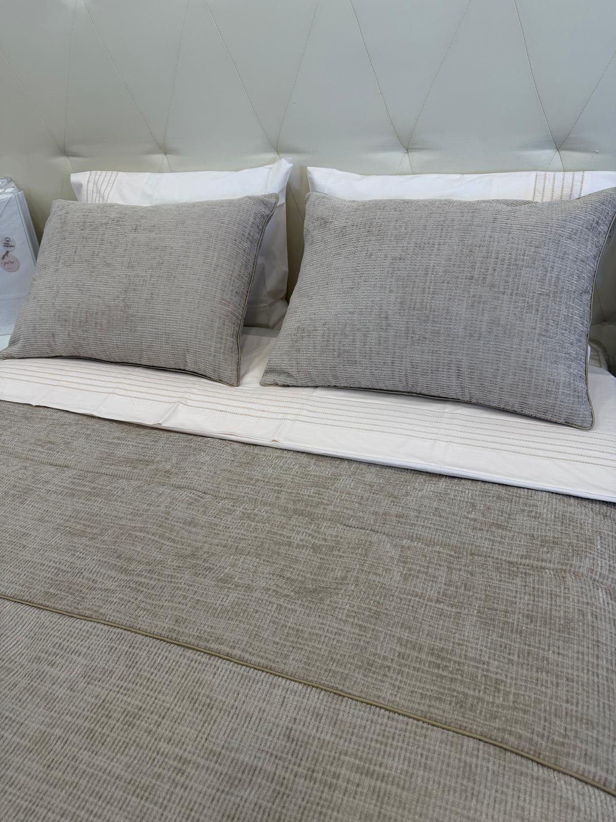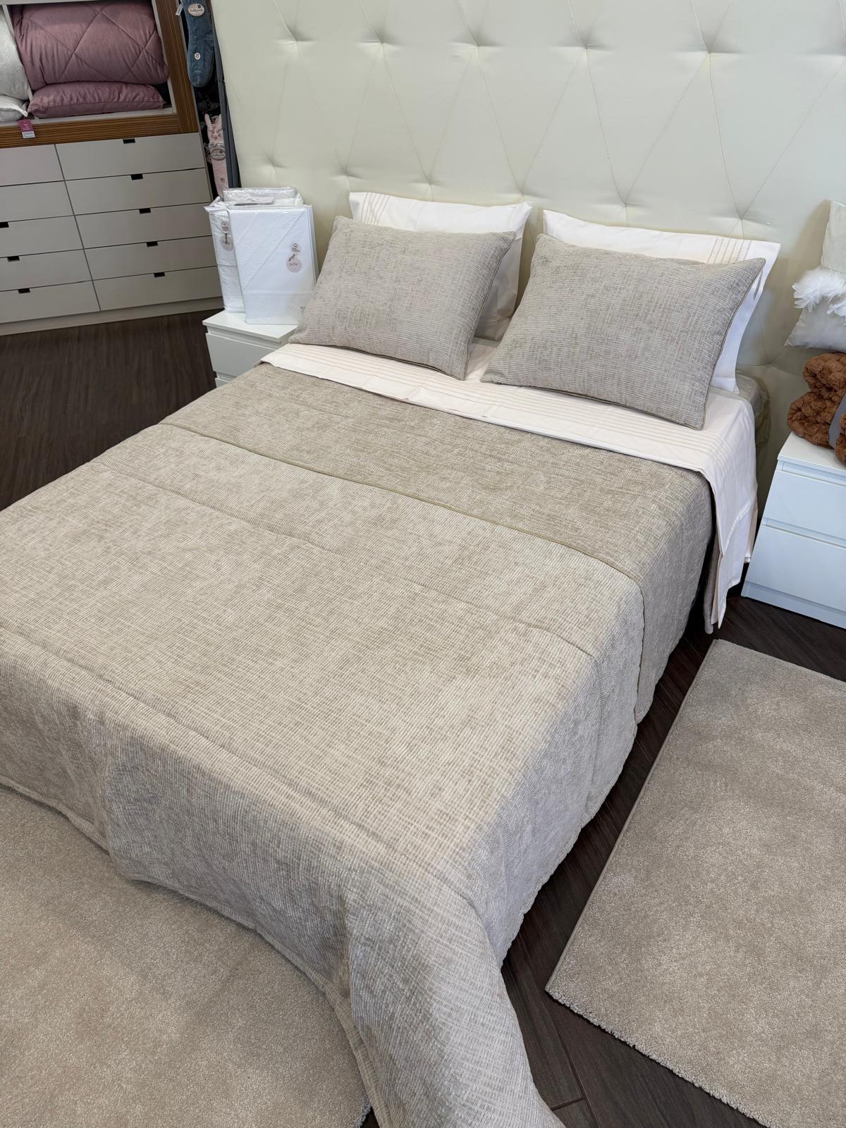 Edredon com tecido resistente nos tons de Taupe, feito com materiais Premium ideal para um ambiente aconchegante.