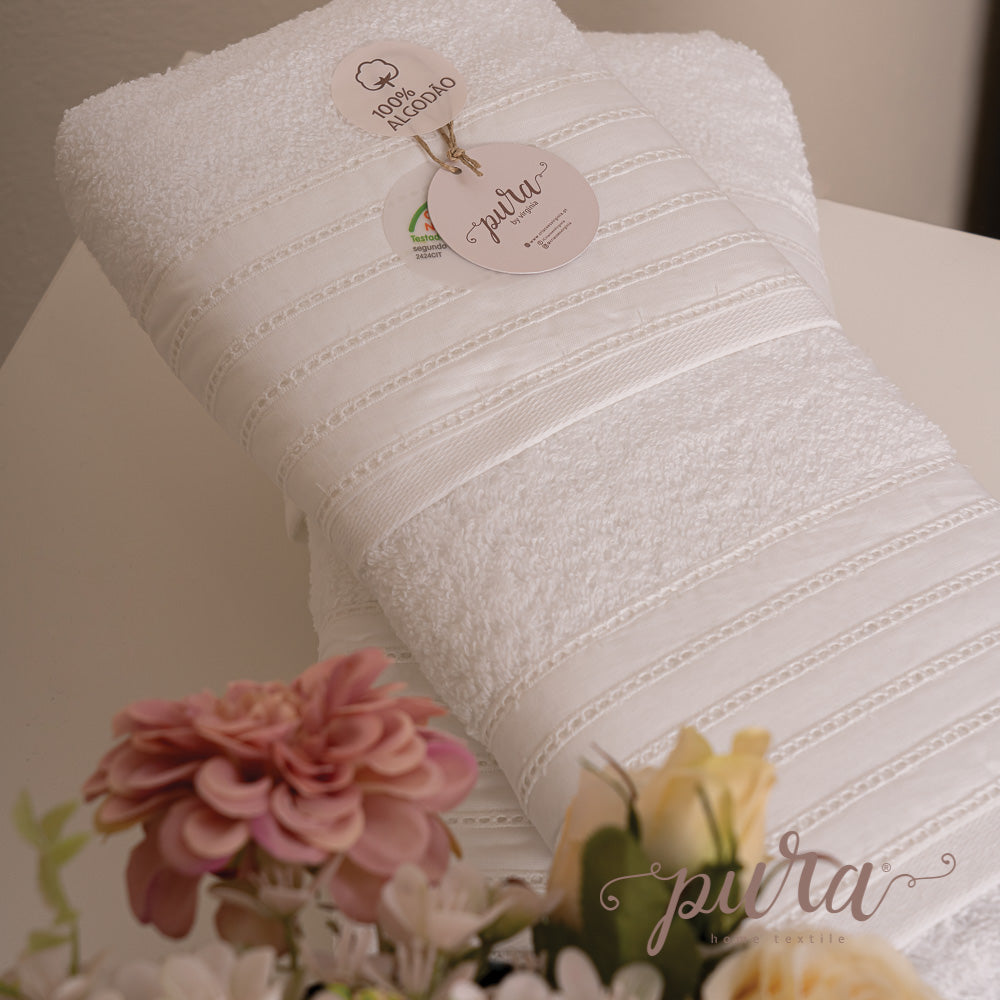 Fabricado em puro algodão, este jogo de banho da nossa marca Pura -home textile®, combina o melhor da tecnologia com a pureza do algodão!