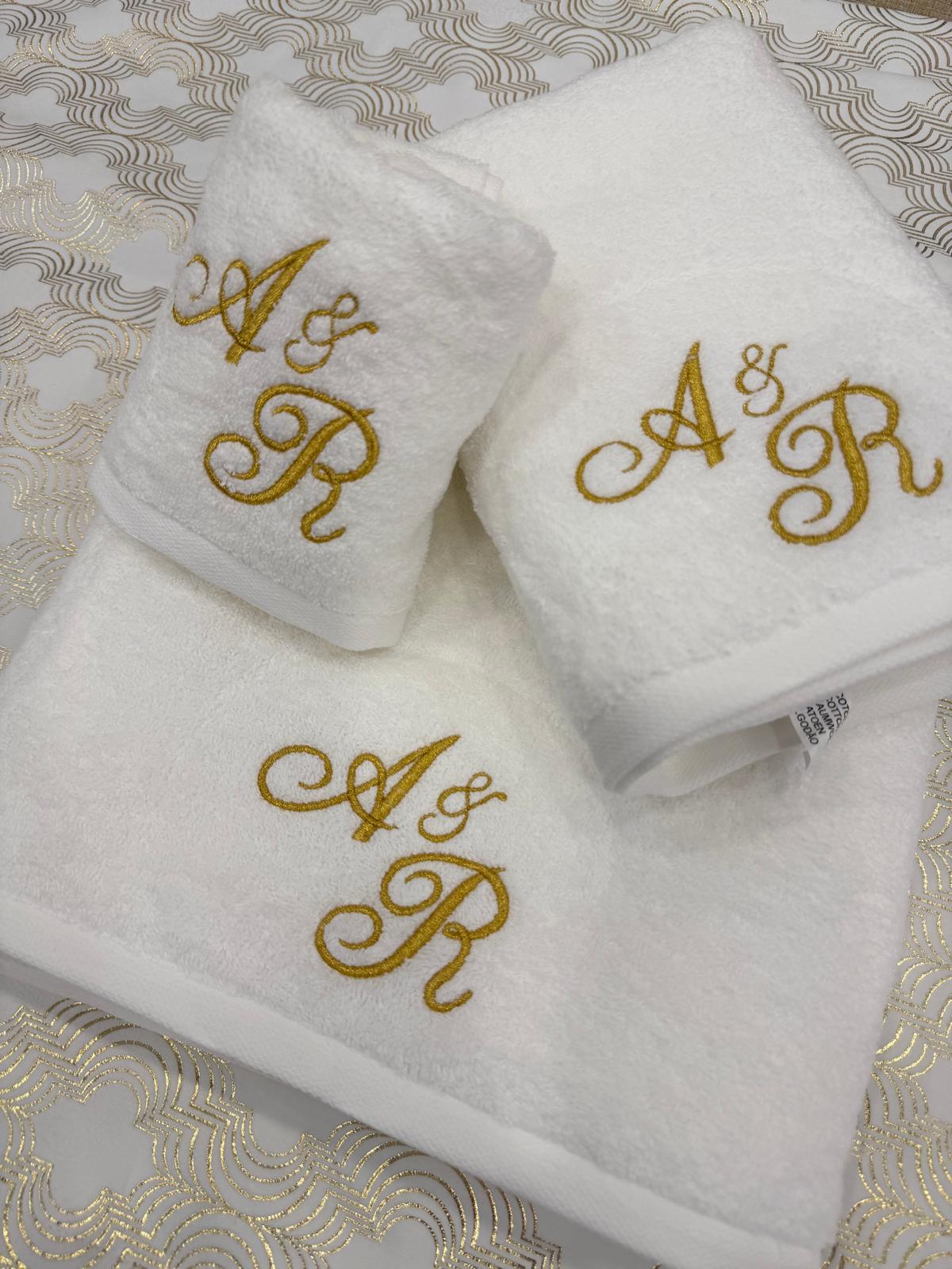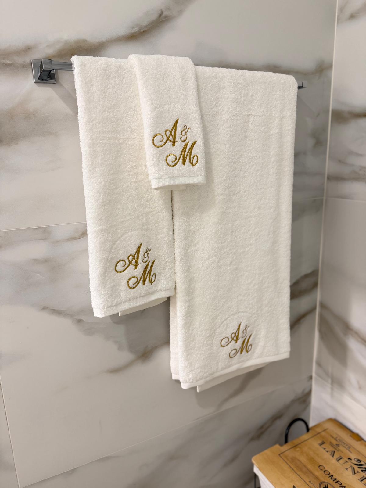 Jogo de Banho Personalizado com duas iniciais manuscritas bordadas (EXCLUSIVO)