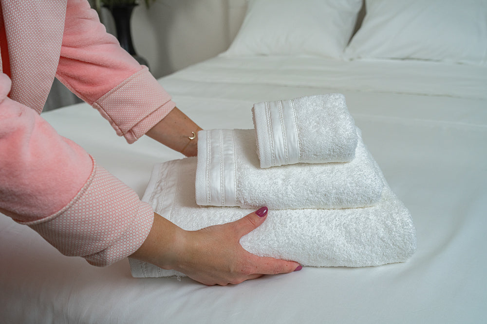 Um jogo de banho em 100% algodão, 550grs/m2, fabricado com a garantia da certificação OEKO-TEX e com um acabamento com um toque natural e suave, conservando ao máximo as propriedades naturais do Algodão, proporcionando assim um maior conforto e absorção.