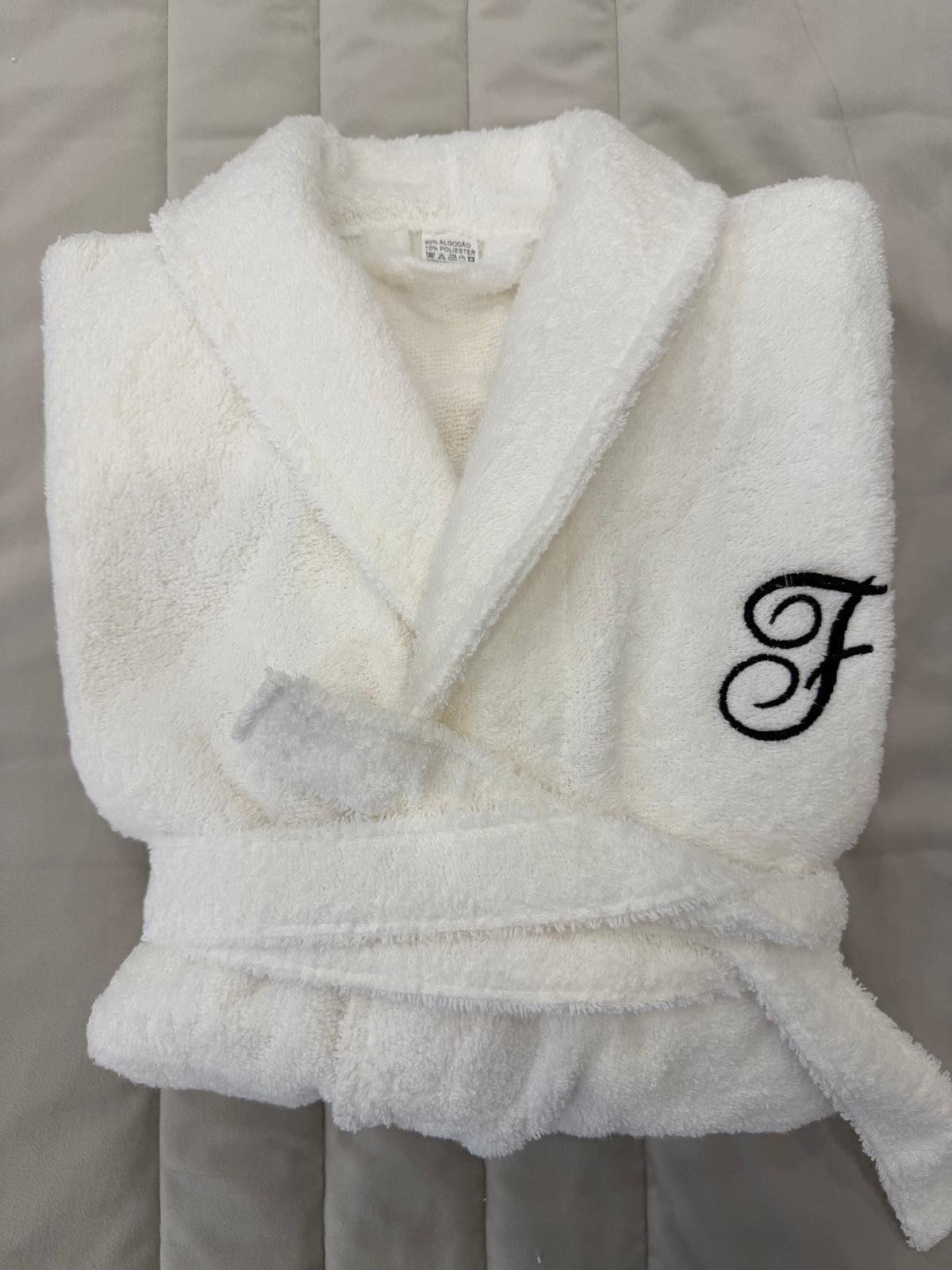 Robe de Banho em felpo, com mangas compridas, de trespasse com cinto ajustável e bolsos frontais.